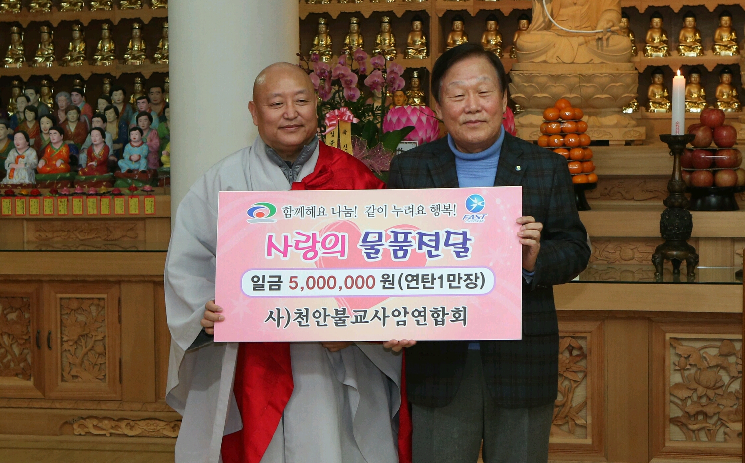 - õ¾ÈºÒ±³»ç¾Ï¿¬ÇÕȸ, ¿¬Åº 1¸¸Àå ±âŹ - õ¾ÈºÒ±³»ç¾Ï¿¬ÇÕȸ(ȸÀå ÀϷνº´Ô)´Â Áö³ 10ÀÏ ÅÂÁ¶»ê ¼ººÒ»ç¿¡¼½Å³âÇϷʹýȸ¸¦ °®Àº ÈÄ ºÒ¿ìÀÌ¿ô¿¡°Ô Àü´ÞÇØ ´Þ¶ó¸ç »ç¶ûÀÇ ¿¬Åº 1¸¸Àå(500¸¸¿ø »ó´ç)À» õ¾È½Ã¿¡ ±âŹÇß´Ù.