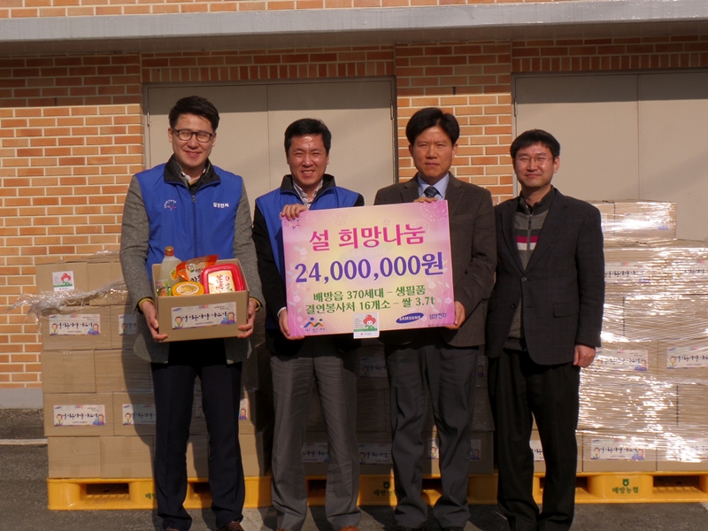 »ï¼ºÀüÀÚ ¿Â¾çÄ·ÆÛ½º(¼¾ÅÍÀå Á¤Å°æ)´Â Áö³ 27ÀÏ, ¹è¹æÀ¾»ç¹«¼Ò(À¾Àå Àü¿µ±Ù)¿¡¼ °ü³» ¾î·Á¿î ÀÌ¿ô¿¡°Ô ½á´Þ¶ó¸ç ¹è¹æÀ¾¿¡ ¼³ ¸íÀý À§¹®Ç°À» Àü´ÞÇß´Ù.