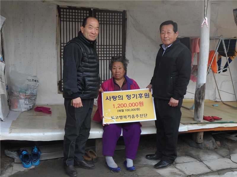 À̳¯ Àü´ÞµÈ ±Ý¾×Àº 10¸¸¿øÀ¸·Î ÇູŰ¿òÃßÁø´ÜÀº ÇâÈÄ 1³â°£ ¸Å¿ù 10¸¸¿ø¾¿ ÃÑ 120¸¸¿øÀ» ÀÌOO ¾î¸£½Å¿¡°Ô ÈÄ¿øÇϱâ·Î ¾à¼ÓÇß´Ù.