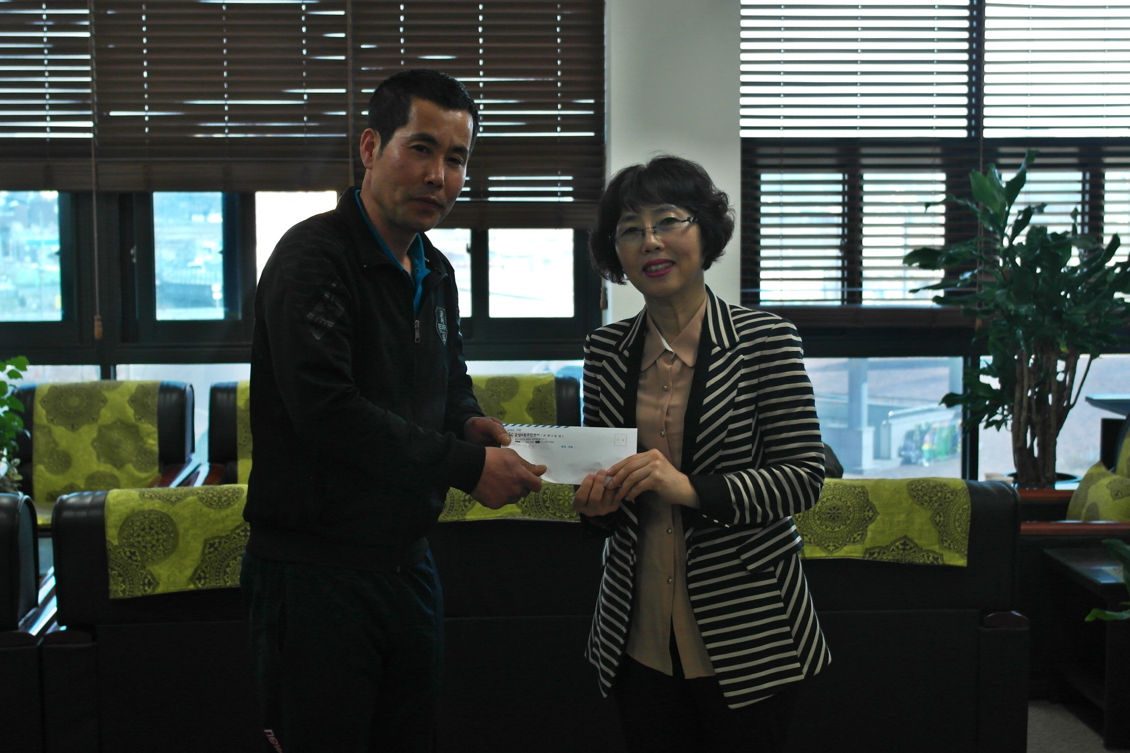 ¼Û¸íÈñ ¿Â¾ç4µ¿ÀåÀº ¡°¾î·Á¿î ÀÌ¿ôÀ» À§ÇØ ÈÄ¿ø±ÝÀ» ÀüÇØÁֽŠ¿ì¼º¸ñÀå Àü»ó±Ç ´ëÇ¥¿¡°Ô °¨»çÀÇ ¸¶À½À» ÀüÇϸç ÀÌ ÈÄ¿ø±ÝÀÌ Áö¿ª¿¡ ³ª´®¹®È È®»êÀÇ ¾¾¾ÑÀÌ µÇ±æ ±â´ëÇÑ´Ù¡±°í ¸»Çß´Ù.