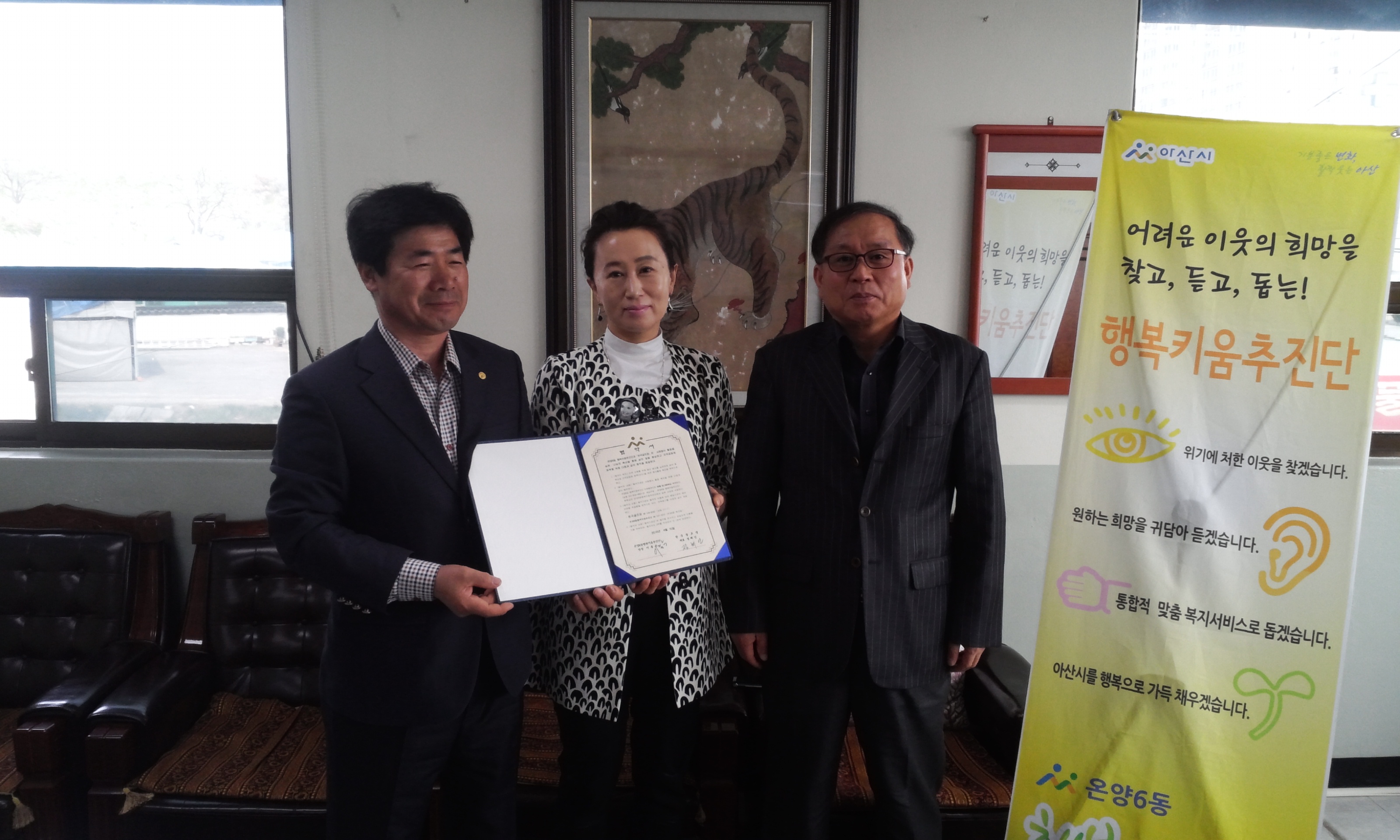 ¾Æ»ê½Ã ¿Â¾ç6µ¿ ÇູŰ¿òÃßÁø´Ü(´ÜÀå ÀÌÁ¾¼ö)ÀÌ °ü³» Àú¼Òµæ ÁÖ¹ÎÀÇ »îÀÇ Áú Çâ»ó°ú Áö¿ª °øµ¿Ã¼ ȸº¹À» À§ÇØ Áö³ 10ÀÏ Áֹμ¾ÅÍ µ¿Àå½Ç¿¡¼ ³²µ¿¿¡ ¼ÒÀçÇÑ Çѱ¹°ñÇÁÀå(´ëÇ¥ Á¤ÇýÀÎ)°ú ÈÄ¿ø Çù¾àÀ» ü°áÇß´Ù.