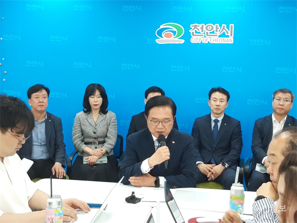 ±è¼®ÇÊ Ãµ¾È½ÃÀå ±ÇÇÑ´ëÇàÀÌ 25ÀÏ ¿ÀÀü õ¾È½Ãû ºê¸®Çη뿡¼ ±âÀÚ°£´ãȸ¸¦ °®°í ¡°¹«°Å¿î Ã¥ÀÓ°¨À» °®°í ½ÃÁ¤À» ÃßÁøÇϰڴ١±´Â ÀÔÀåÀ» ¹àÇû´Ù. ±è ±ÇÇÑ´ëÇàÀº ¡°°©ÀÛ½º·¯¿î ½ÃÀå ±ÈÀ§·Î ½Ã¹Î²²¼ È¥¶õ°ú °ÆÁ¤À» µå·Á ¹«°Å¿î ½ÉÁ¤À̳ª ½ÃÁ¤Àº ¹ý°ú ¿øÄ¢¿¡ µû¶ó ¾ÈÁ¤ÀûÀ̰í Àϰü¼º ÀÖ°Ô ÁøÇàµÉ °Í¡±À̶ó°í ¸»Çß´Ù.